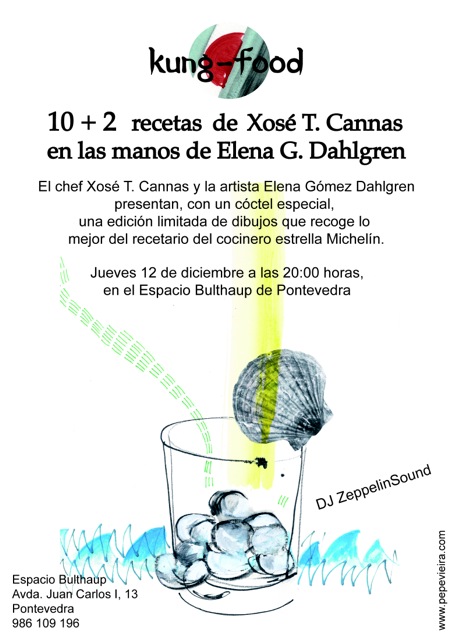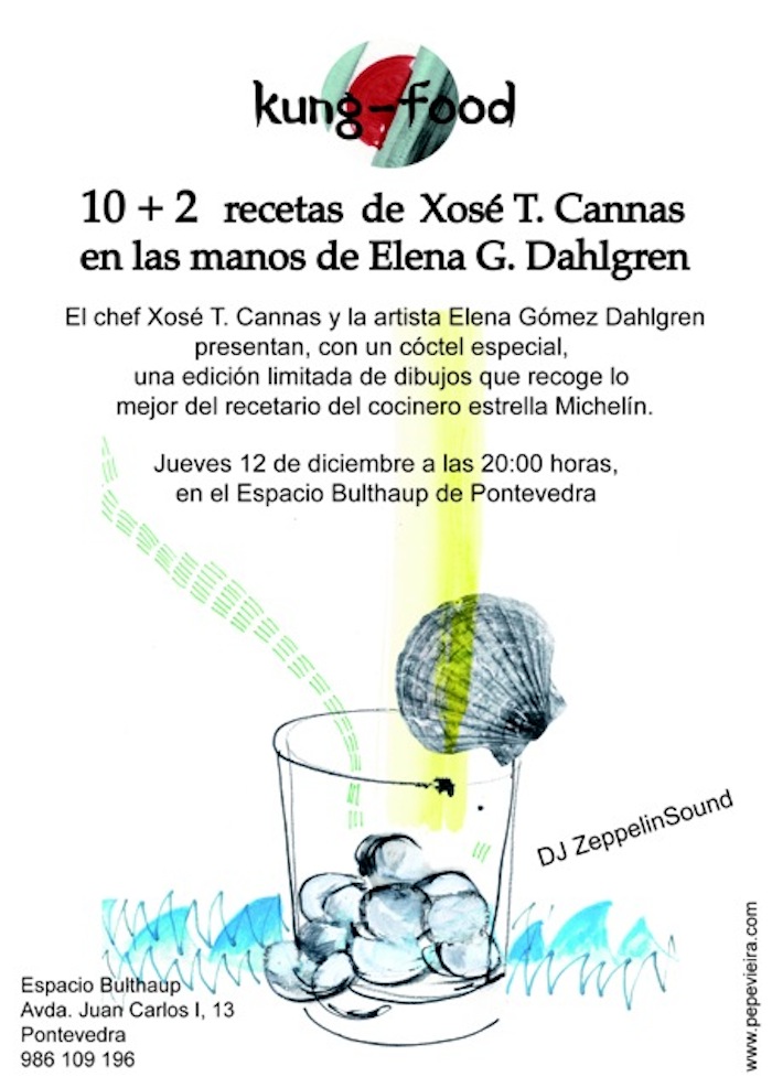 A partir del jueves 12 de diciembre y durante un mes, el showroom de Pontevedra (Introset) se convertirá en un espacio de fusión del arte y la cocina con la presentación de la muestra “Kung-food: 12+ recetas de Xosé T. Cannas en las manos de Elena G. Dahlgren”.